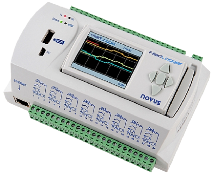 - High-Performance Storage and Logging: The FieldLogger has memory to store up to 512k of data, with the possibility of expansion via an SD card, allowing the logging of up to 100 channels at configurable rates. Data can be downloaded through software or via a USB-host interface using a flash drive.